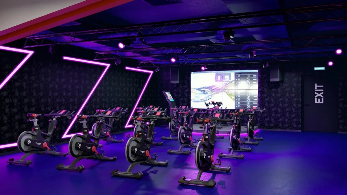📝 Описание: Современный фитнес-клуб с бассейном, тренажёрным залом, групповыми занятиями (йога, функциональный тренинг, танцы), сауной и СПА.